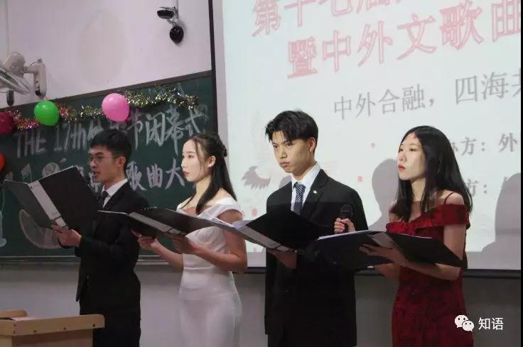 2019年11月27日晚,“同外相行,语润爱国”第十七届外语节闭幕式暨“中外合融,四海共唱”中外文歌曲大赛在阶梯教室四圆满落幕,2018级和2019级部分学生参加了本次活动。