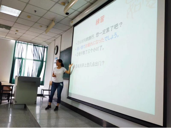 在FIUF-401教室举行青年教师基本功大赛,大赛由教学副院长荆红艳主持,特邀学院历届市级青年教师基本功大赛获奖教师和各语种资深教师担任评审。