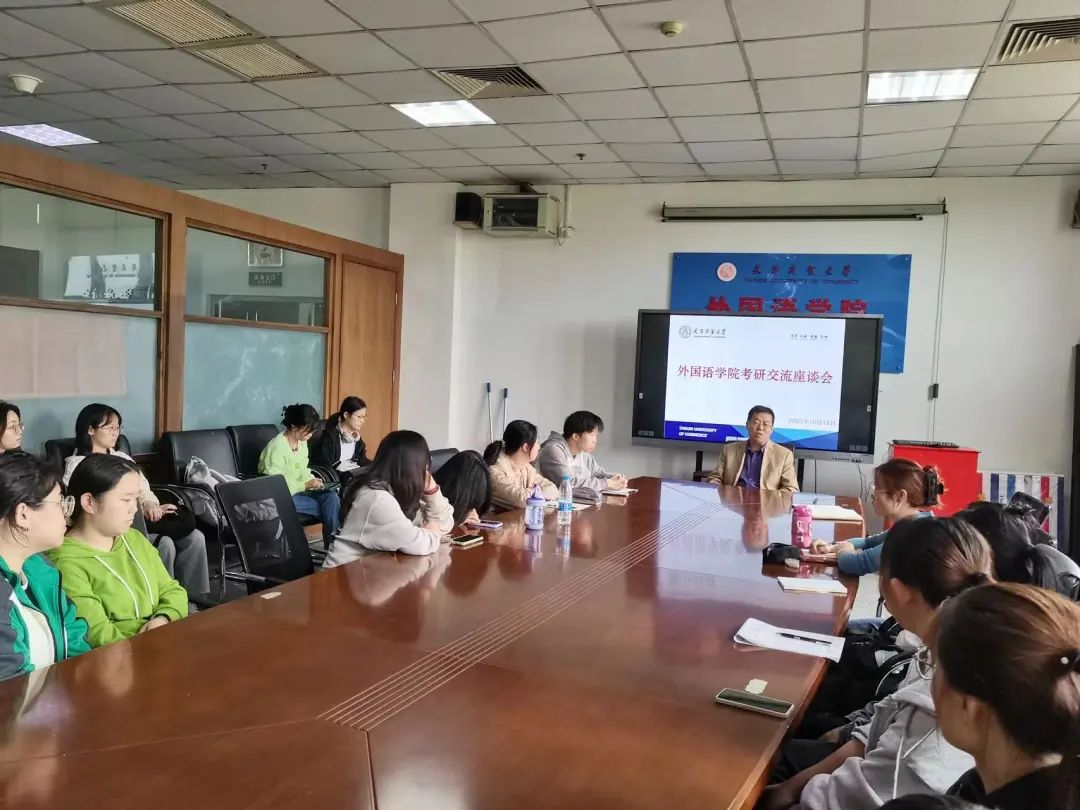 在学院会议室开展考研交流座谈会。院长王占斌出席,毕业年级辅导员、20级、21级学生30余人参加。